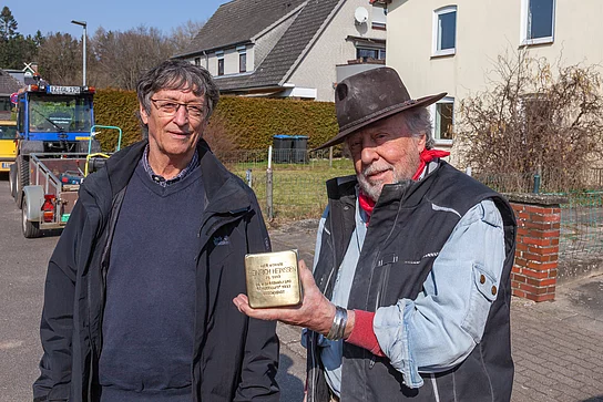 Bei bestem Frühlingswetter und unter Beteiligung von bis zu 30 Teilnehmern ließ Gunter Demnig es sich nicht nehmen, die Stolpersteine persönlich zu setzen. Sie alle erinnern an Lägerdorfer, die Opfer der nationalistischen Diktatur im Dritten Reich geworden waren. Uwe Erickson gab dazu die notwendigen Erläuterungen.