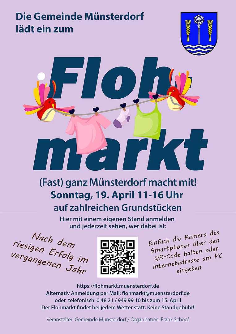 Am 19.04.2026 findet in Münsterdorf wieder auf zahlreichen Grundstücken ein Flohmarkt statt.